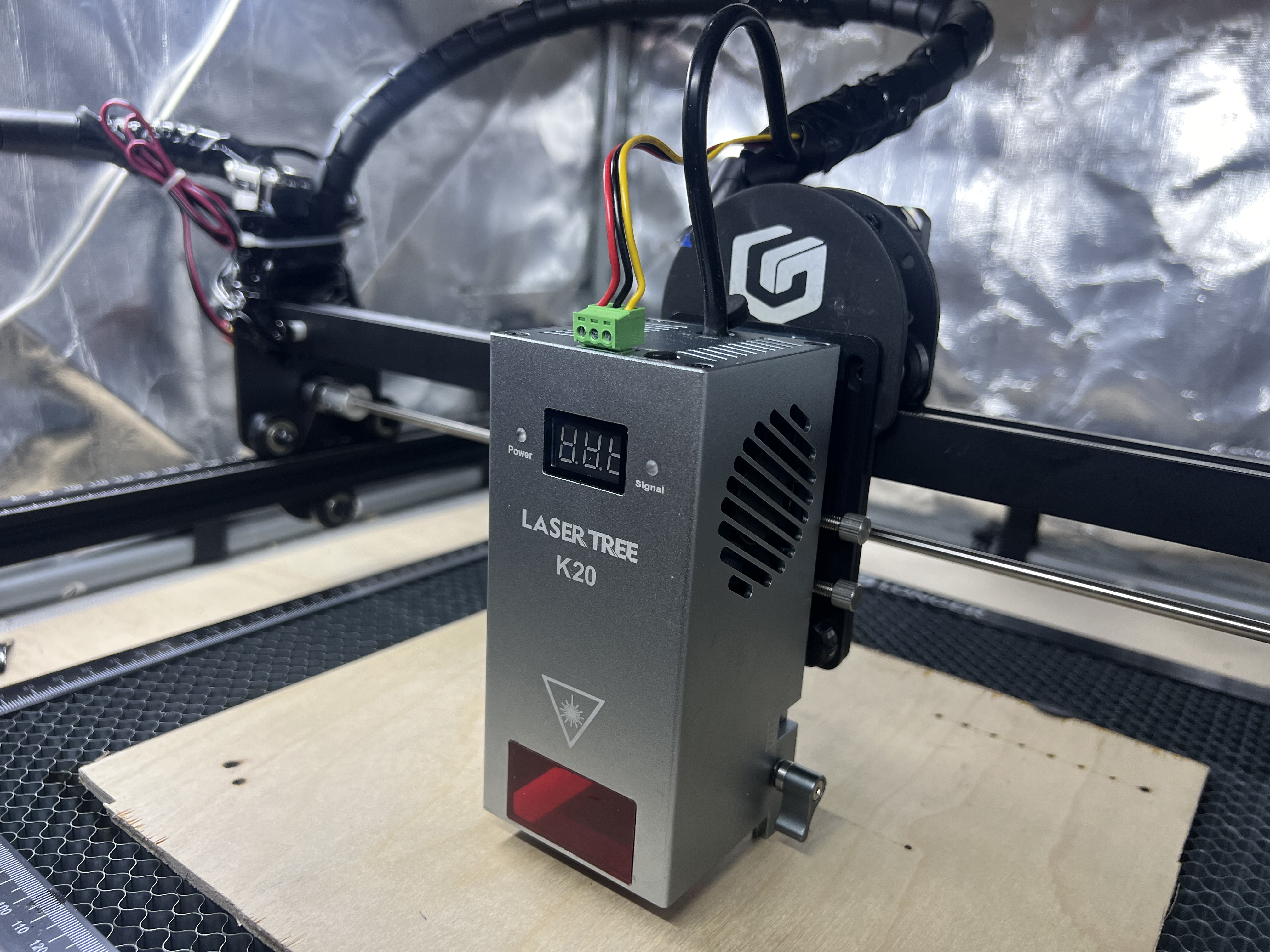 I upgraded my Longer Ray5 - 10 watt module to the Laser Tree K20 - 20 watt module. The upgrade wasn’t too bad, you just have to manage cables and figure out places to mount stuff so it works and you should be good to go.