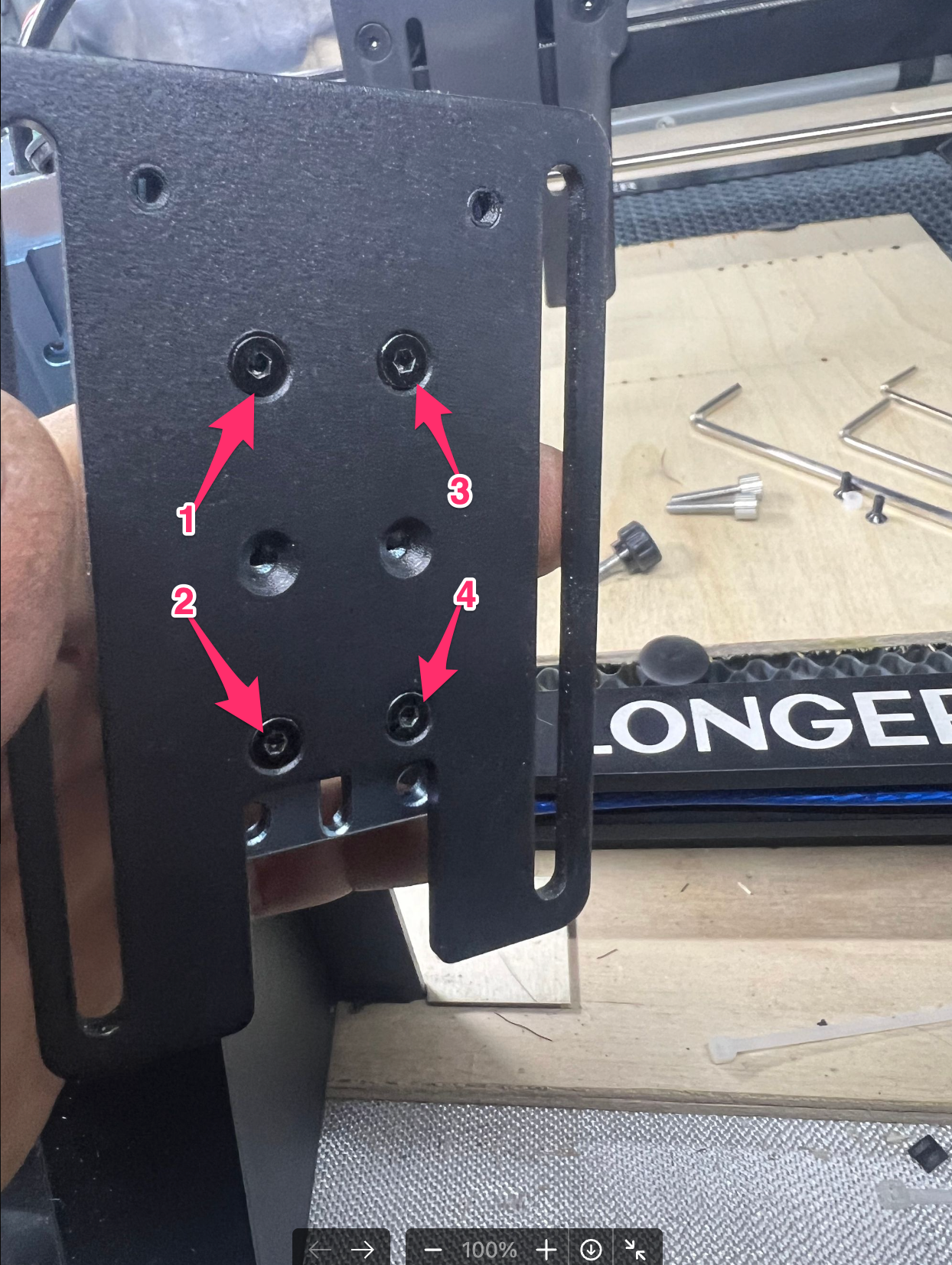 Insert the OEM Longer machine screws with vinyl jacket - through the back of the Longer gantry plate to initially attach the OEM Longer slide plate to the Longer gantry plate (just like you did when you first attached the OEM Longer Laser Head originally).